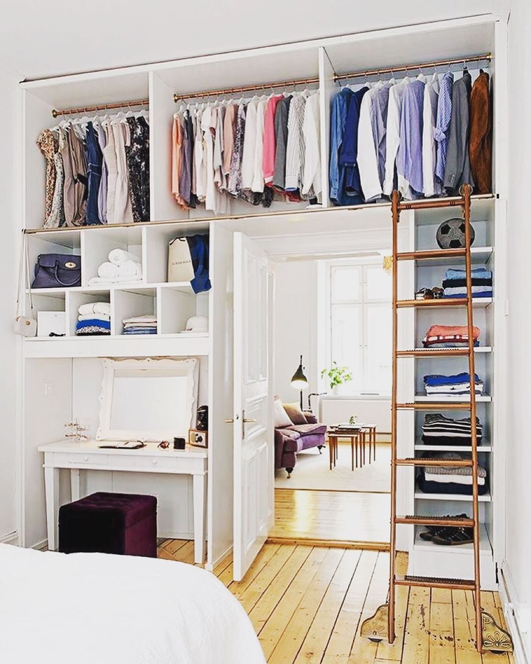 — Разделение пространства: Используйте полки, ящики и вешалки, чтобы разделить пространство в гардеробной на категории.