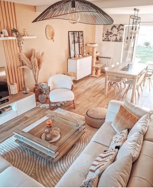 — Гостиная: Здесь лучше всего выбрать цвета, способствующие общению и расслаблению, такие как теплые нейтральные гаммы.