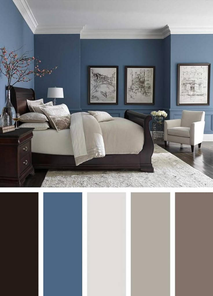 В спальне лучше всего применять спокойные, расслабляющие цвета, такие как нежно-голубой, серый или светлый зеленый. Они способствуют отдыху и спокойному сну.